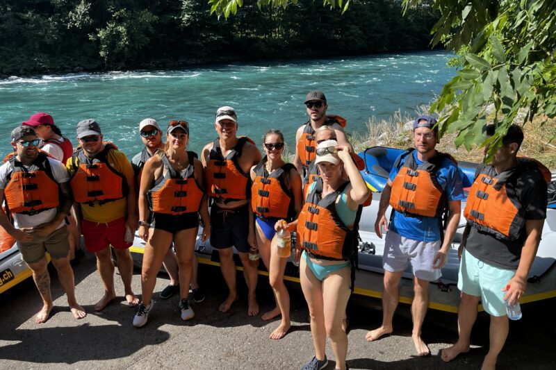 Le lendemain, l’excitation était à son comble pour une descente en rafting sur l’Aar, de Thoune à Berne. Dans une ambiance à la fois conviviale et sportive, nous avons pagayé ensemble, admirant les paysages bucoliques des rives de la rivière. L’esprit d’équipe et la bonne humeur étaient omniprésents, surtout lors des moments de détente autour d’un repas partagé sur une plage bordant la rivière. Ces deux jours ont été l’occasion parfaite de renforcer nos liens tout en découvrant les trésors de la capitale suisse.